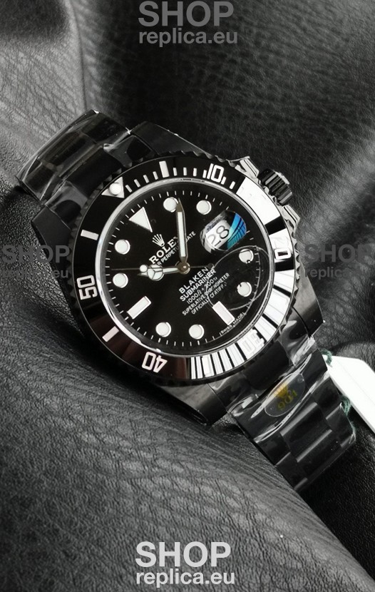 Rolex Submariner Blaken DLC Coated Swiss Replica Watch in Black Dial