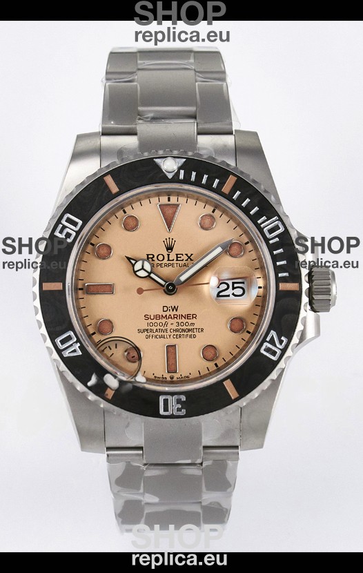 Rolex Submariner DiW Sandblasted Steel Casing Carbon Fiber Bezel Watch Beige Dial