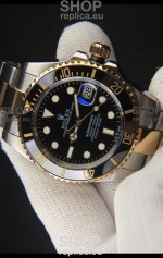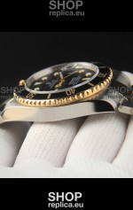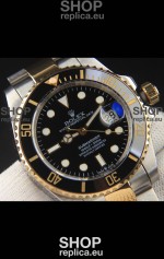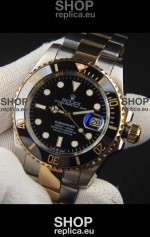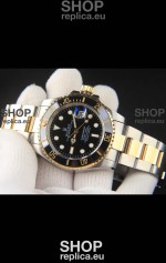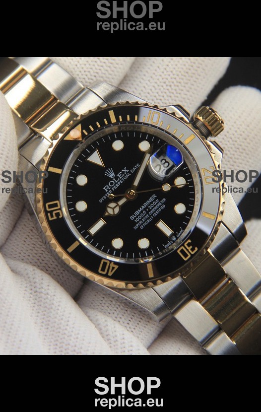 Rolex Submariner Japanese Replica Watch 904L 2 Tone Yellow Gold - Ceramic Bezel in Black