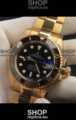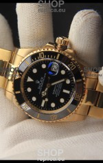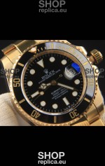 Rolex Submariner Japanese Replica Watch 904L Steel Yellow Gold - Ceramic Bezel in Black