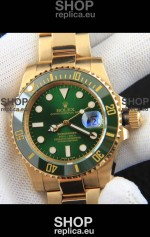 Rolex Submariner Japanese Replica Watch in Yellow Gold Casing Green Dial