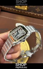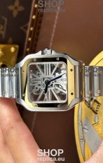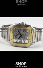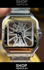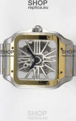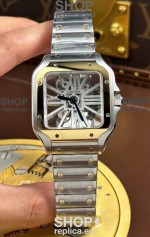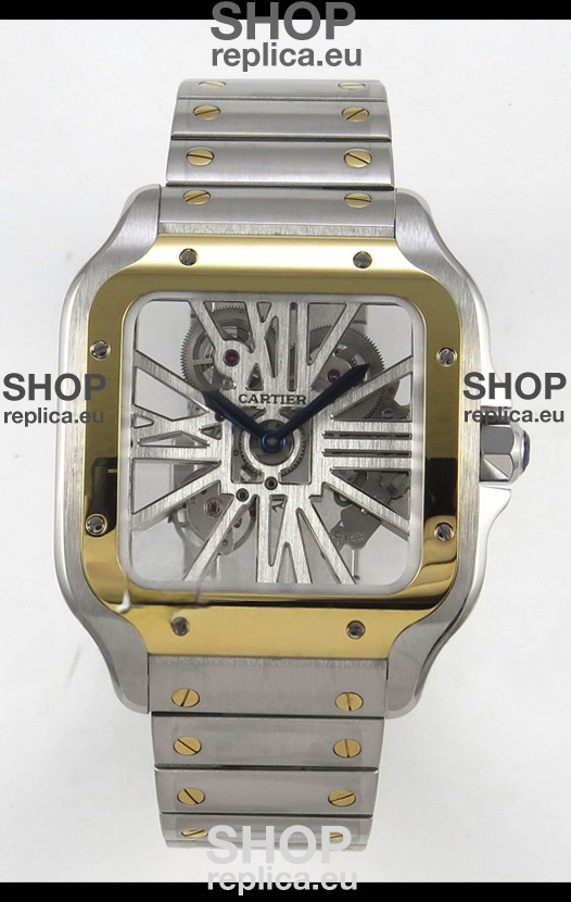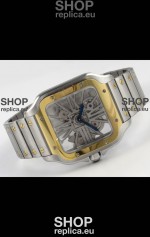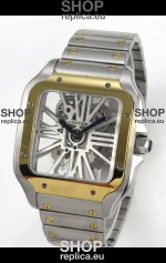 Santos De Cartier Super Clone Watch in Skeleton Dial Two Tone Casing Watch