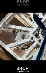 Skeleton See-Through Dial with Blue Sapphires Tip Stem