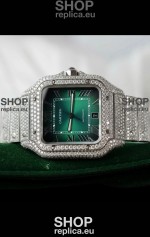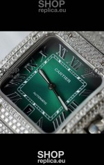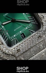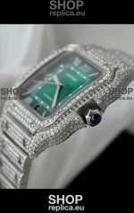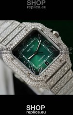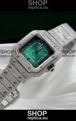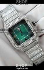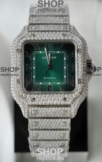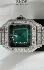 Santos De Cartier Watch in Green Dial MOSSANITES Paved Edition Swiss Replica Watch
