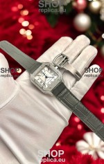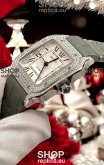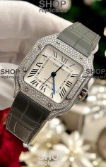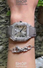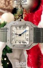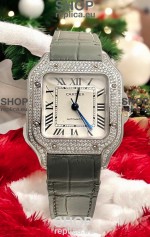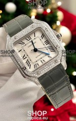 Santos De Cartier Watch in White Dial 39.50MM MOSSANITES Paved Bezel Swiss Replica Watch