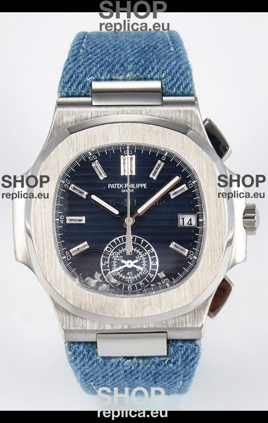 Patek Philippe Nautilus 5980/60G-001 Blue Dial Fabric Strap Crystal Numerals
