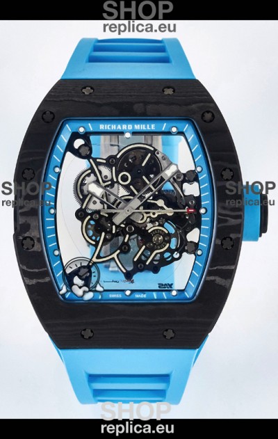 Richard Mille Super Clone RM67-02 Fernando Alonso Blue Carbon TPT 37 Grams Watch Blue Strap
