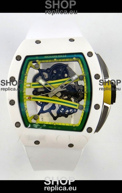 Richard Mille Super Clone RM61-01 White Ceramic Green Strap Swiss Replica Watch