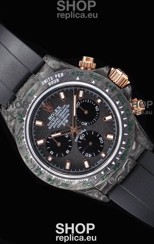 Rolex Daytona DiW Forged Cabon Casing 1:1 Mirror Replica with Black Strap